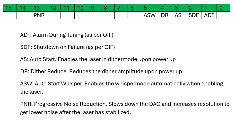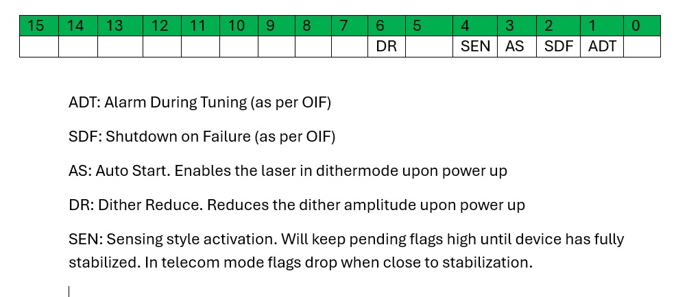 Register 0x33 includes some important device configuration settings. The OIF MSA has defined some, but the Pure Photonics micro-ITLAs have expanded on this.