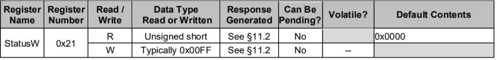 The first byte contains the checksum (first 4 bits) and status information. The second byte contains the register address and the third and fourth byte contains the data read.